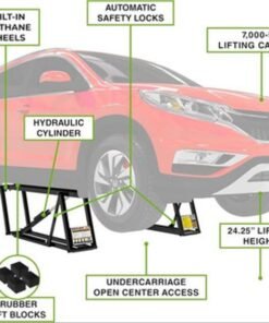 The QuickJack 7000TL is a heavy-duty 7,000 lb portable car lift designed as a compact alternative to a traditional 2-post lift. Two low-profile frames slide under the vehicle and engage the frame at the manufacturerβs lift points, then rise together at the touch of a button. With a super-low 3.5″ collapsed height, up to about 24.5″ of lifting height (with blocks), and a 110V power unit, itβs a powerful solution for home garages, detail bays, and professional shops that want real undercar access without drilling into the floor.